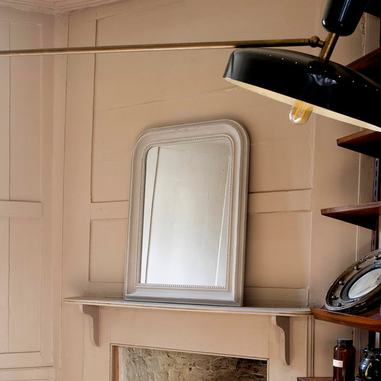 This elegant piece features a stunning grey frame adorned with intricate beading, giving it a touch of glamour and sophistication. Hang it in any room to add a touch of shine and style.